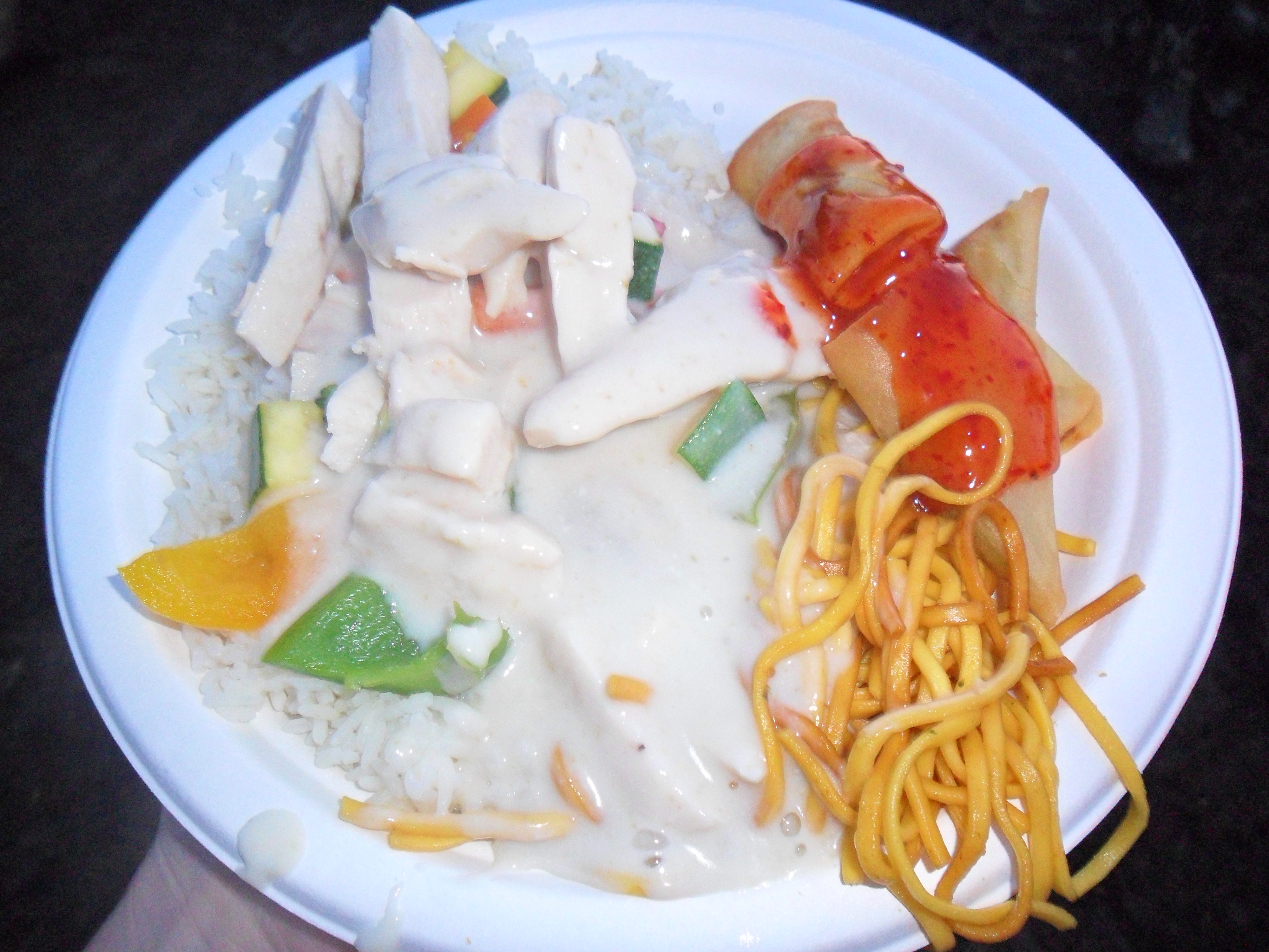 3. This meal doesn’t look as appetizing, granted, but it was actually very tasty. Thai green chicken curry, rice, noodles and spring rolls with chilli sauce. A bit of a random mix of thai and chinese, but went down a trea