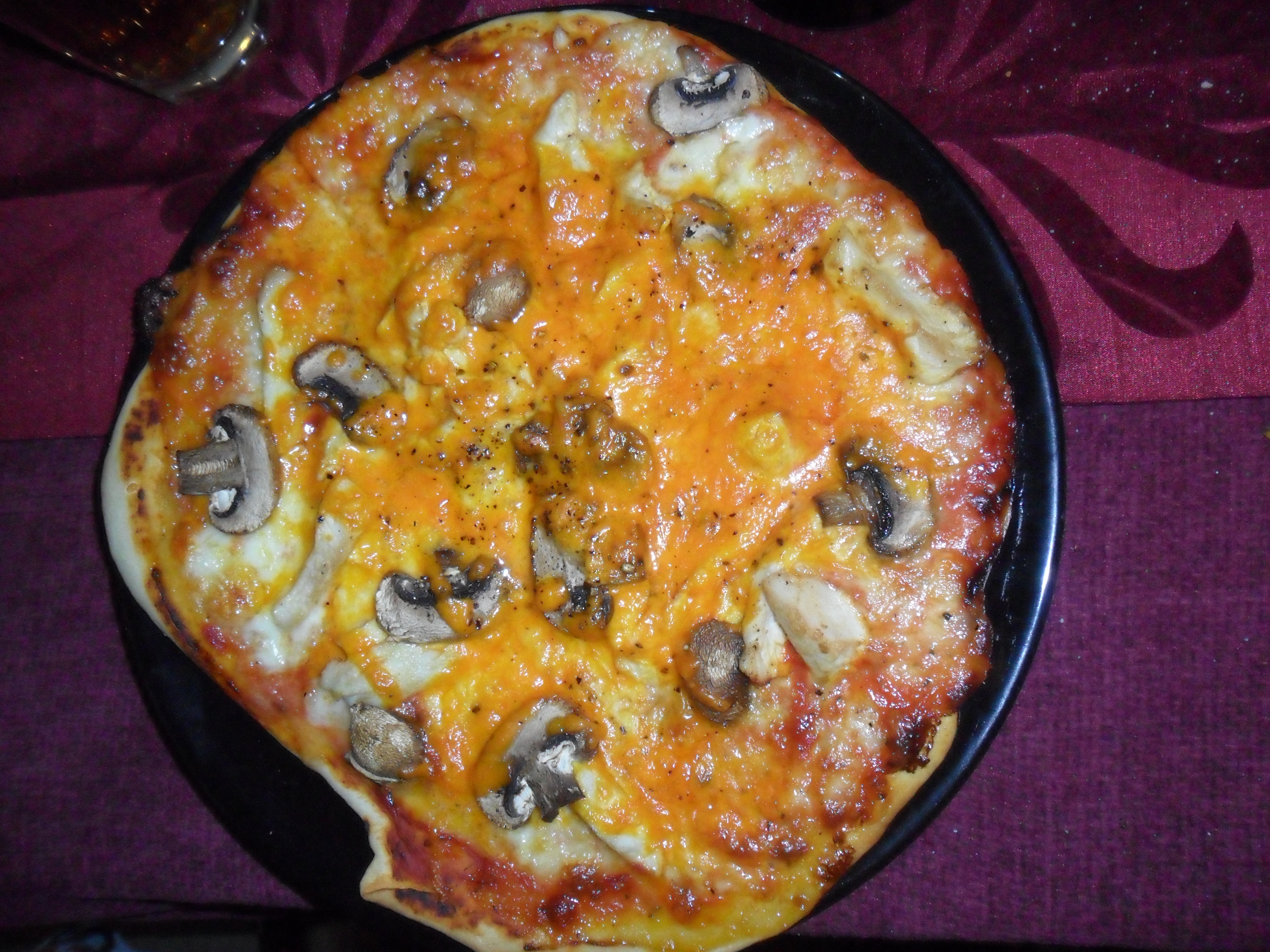 Kieran just went for mozzerella, cheddar and mushrooms on his (mine’s prettier, no?):