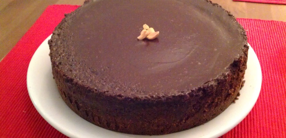 Kieran and I will be spending Christmas apart this year as I will be hosting Christmas Day with my father, sister and her fiancé and Kieran will be in Ireland with his family. Consequently, we had Christmas this past weekend and I made a full Christmas dinner. The star of the meal was the dessert, which was Nigella’s Chocolate Peanut Butter Cheesecake.
