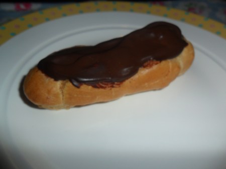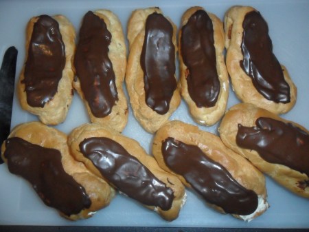 I love eclairs! My boyfriend just licks the chocolate off, scoops out the cream filling, and then tosses the pastry itself — ABOMINABLE!! Your eclairs look delicious. 🙂