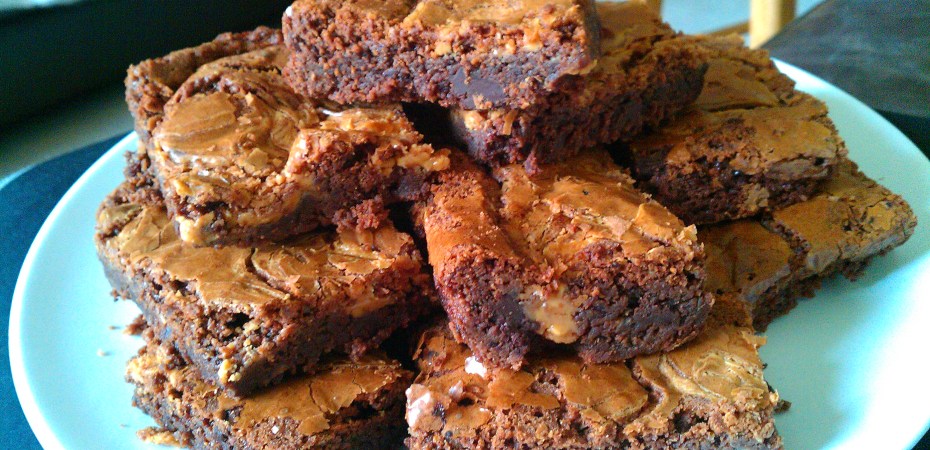 I don’t often make recipes using the american ‘cups’ system, mostly because I find the cup measurement a bit woolly and imprecise. However, this recipe looked too good not to try. And as well as being amazing, thick, chewy and delicious brownies, my success with this recipe has made me consider cooking with cups in future.
