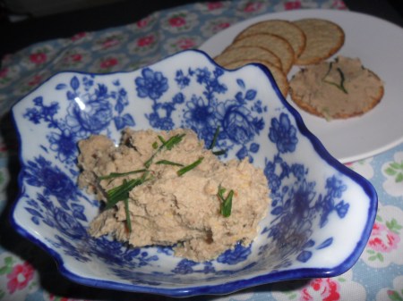 I’d never made a mackerel paté before, and when I saw the recipe for this one it looked so lovely that I thought I’d give it a try. I have to say that I was slightly disappointed. I can’t believe I’m actually going to say this, but it was a little bit too fishy for me. Now, I love fish. I’m a fisherman’s daughter, for crying out loud. I’ve been eating kippers for breakfast all my life – and you can’t get more fishy than that! But this paté was SUPER fishy. So much so that I could only have one cracker’s worth and I could taste it for the rest of the day. Kieran wouldn’t even sit next to me while I ate it – and he loves mackerel paté usually!