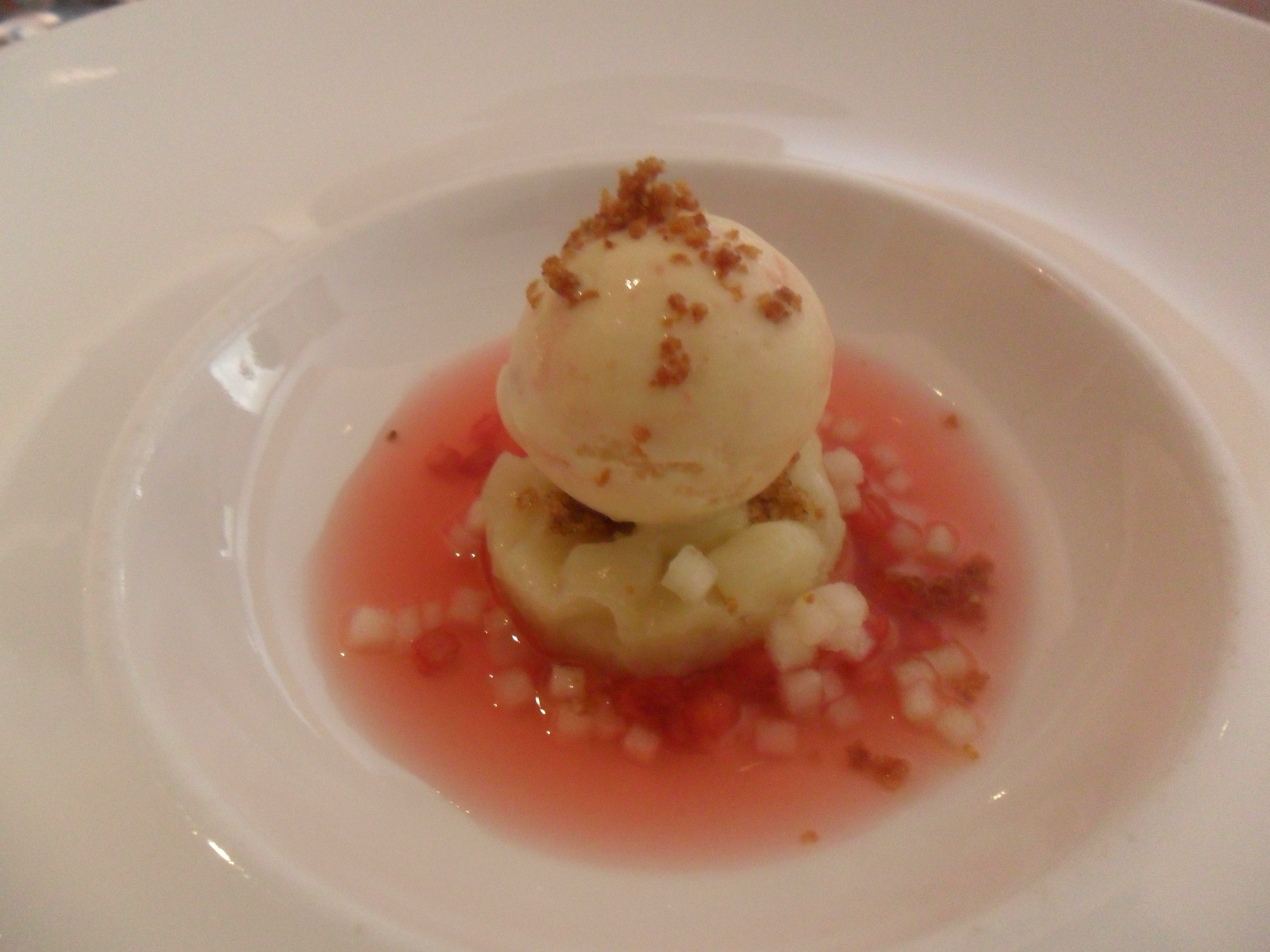 I had the apple terrine for dessert, which together with the accompaniments, tasted like a deconstructed apple pie. This is not a criticism – somehow I got the tastes and flavours of a stodgy, yet comforting dish in a light and fresh dessert. That rhubarb and custard ice cream was exceptional.
