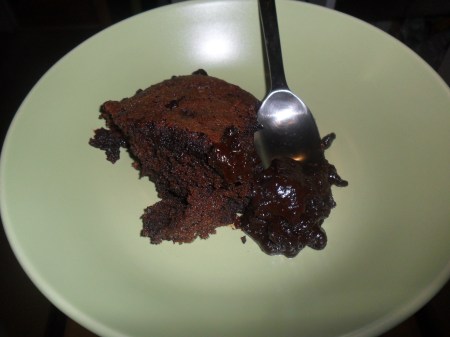 The great thing of this is that it’s so easy to make. You make a basic chocolate cake mix, pour into a baking dish, then pour over some water, mixed with cocoa and sugar. It looks weird, but when you bake it the  cake bakes perfectly, and the liquid turns into a hot, chocolate sauce. It’s the epitome of laziness – but also happens to taste awesome.