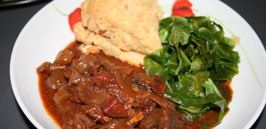 This stew is a little more interesting than your bog-standard beef stew. The chorizo and smoked paprika really add some flavour. Also, I love the idea of having a savoury scone as an accompaniment, rather than a dumpling, which I’m not the biggest fan of.