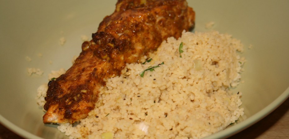 The flavour of the marinade is great and works well with the salmon. I’d be tempted to jazz the couscous up a bit with some more herbs and some pomegranate seeds if I made this again.