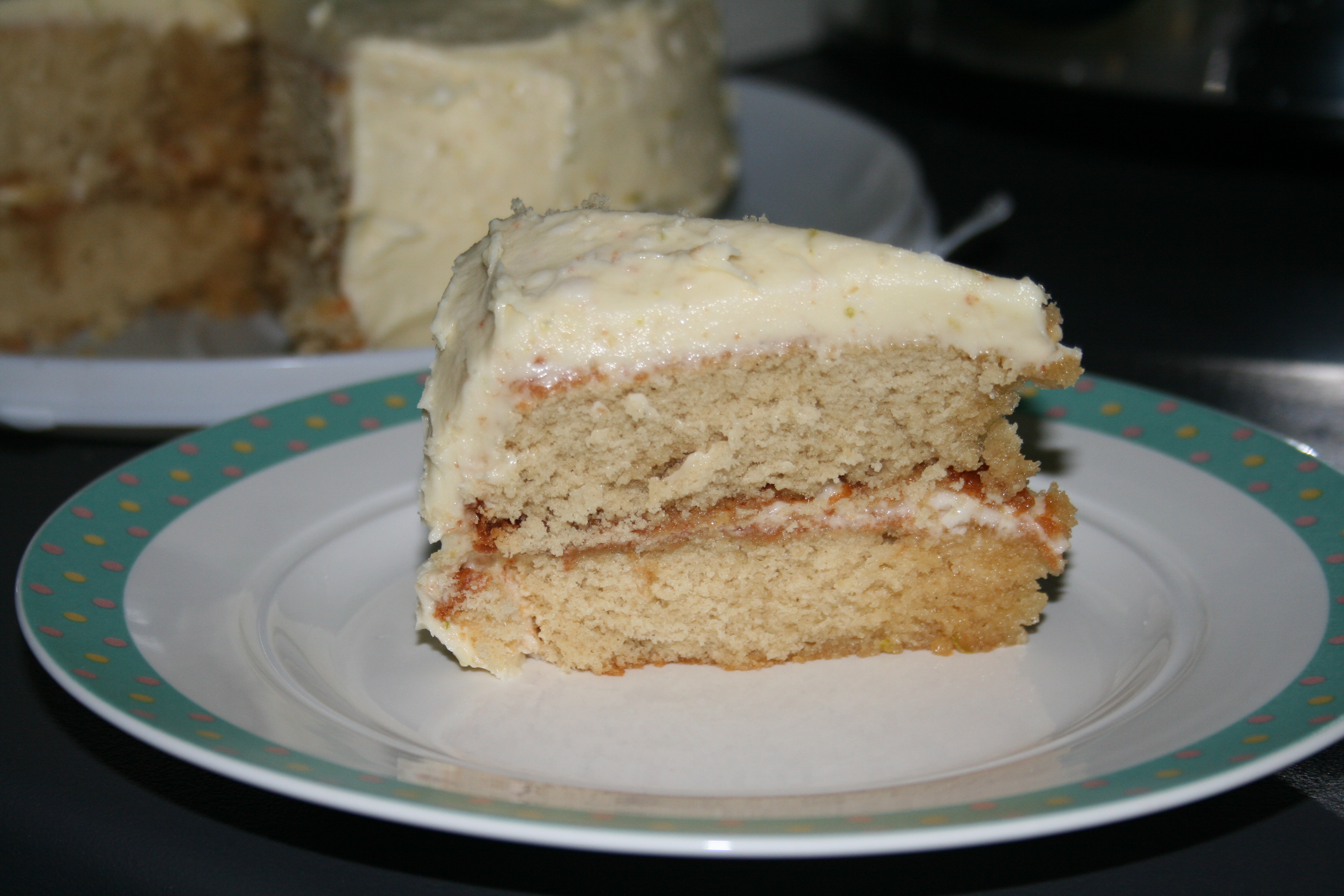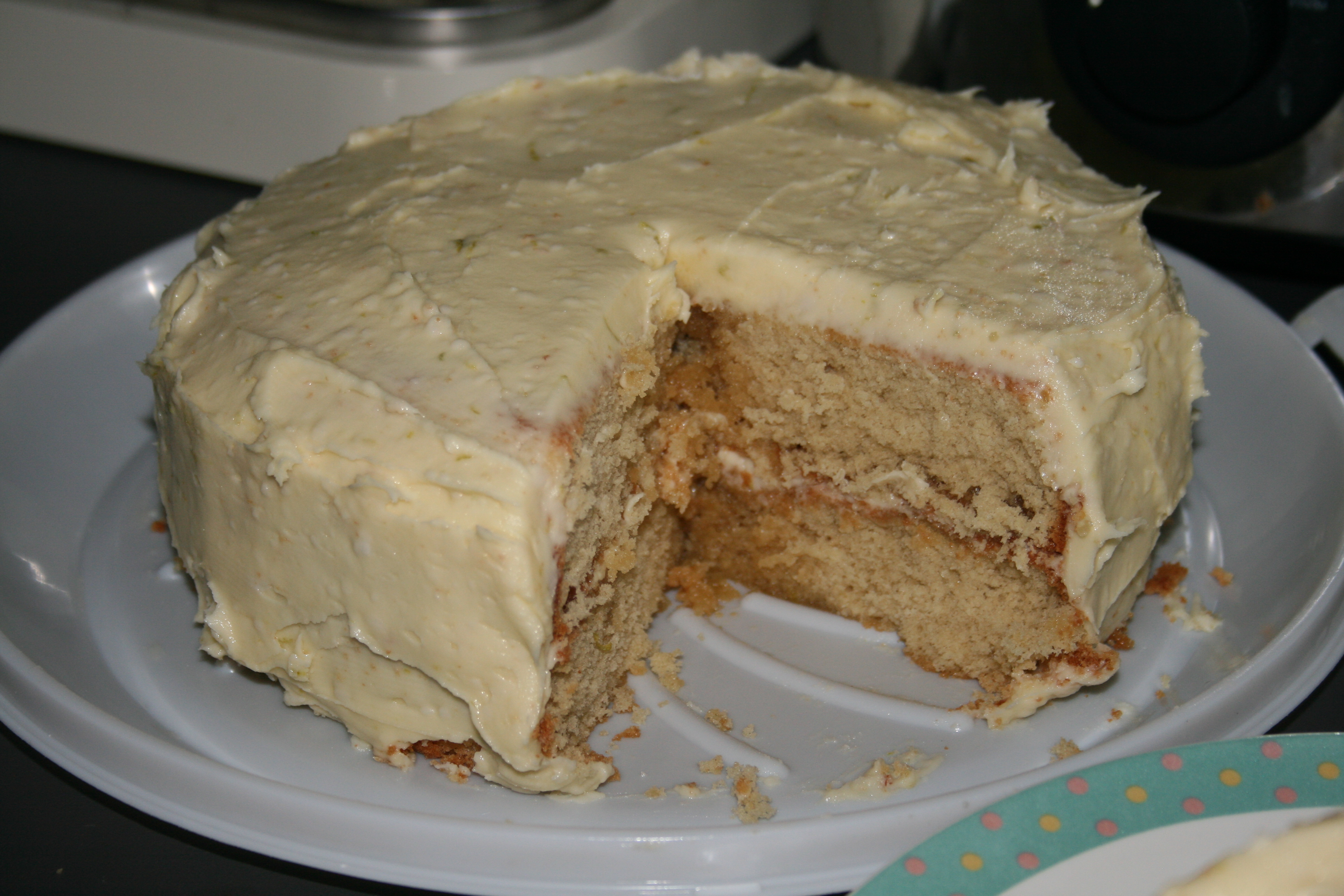If I made this again, I’d be tempted to add some lime curd between the cakes, just because I love lime and I think it would add another dimension to the cake.