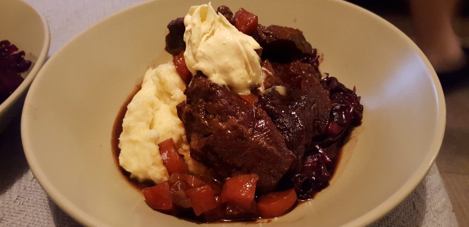 The meat was soft fell apart, the stew was rich and full of flavour and was offset perfectly by the sweetness of the red cabbage and the slight sharpness of the mustard cream.