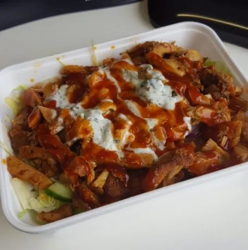 Zorbas is a greek take away in Manchester Arndale Market that sell traditional greek food including gyros and hot dishes like moussaka and stews with rice. I eat mainly low carb, and the gyros salad from Zorbas is one of the more tasty and filling options open to me.