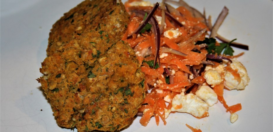 This is a nice twist on regular falafel and if you need to make this vegan friendly, drop the feta cheese from the salad. You could also put all this in a pitta for a tasty lunch on the go.