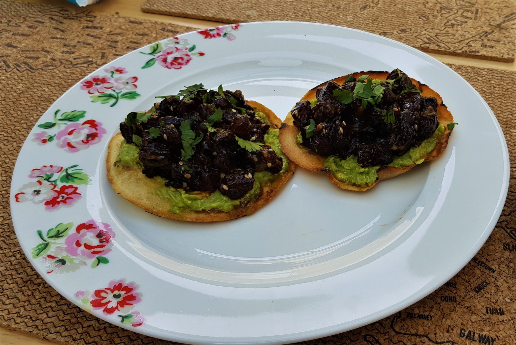 - Fry the tortillas in the sunflower oil, turning them once until they are crisp. Spread some avocado on each tortilla, then pile with the tuna. Sprinkle with the remaining sesame seeds and the coriander to serve.