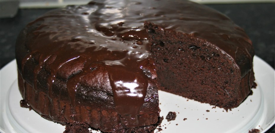 - For a saucy finish, ice just before serving, but if you don’t mind the icing matt and set, you can do it as soon as the cake is cool. Chop the chocolate and put in a bowl, then combine the cream and syrup in a small pan. Heat gently until bubbles just start to appear then pour over the chocolate. After 3-5 minutes stir together until the chocolate has melted completely. Slowly spoon or pour all over the cake. Leave for a minute (or up to a day) then serve in wedges, if you like.