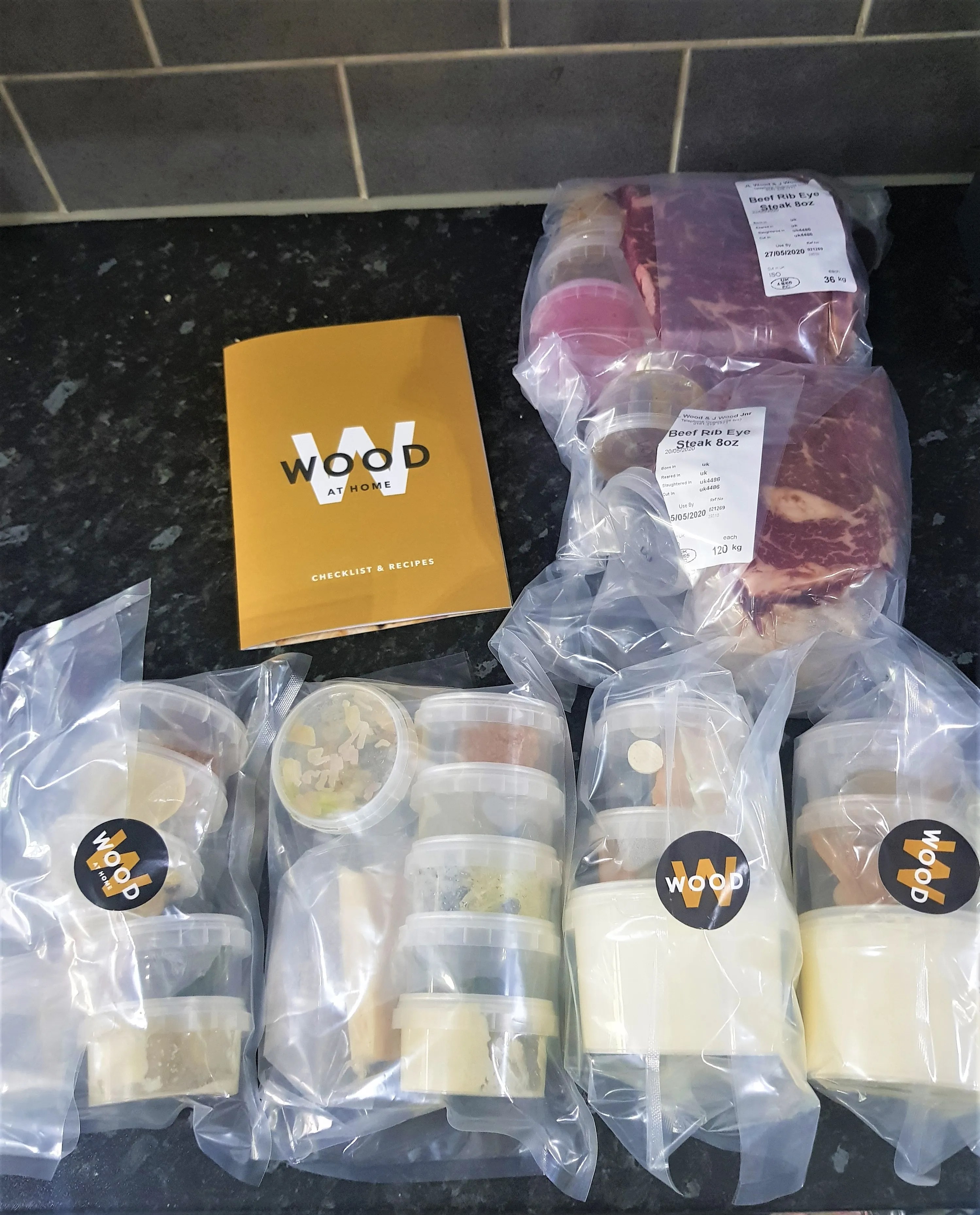 Fast forward to May 2020 it was our first wedding anniversary! With nothing open, we looked to a meal kit to celebrate, so chose Wood’s offering. It was really fun to cook and assemble, with a load of tubs and elements to plate that made it feel like an event.