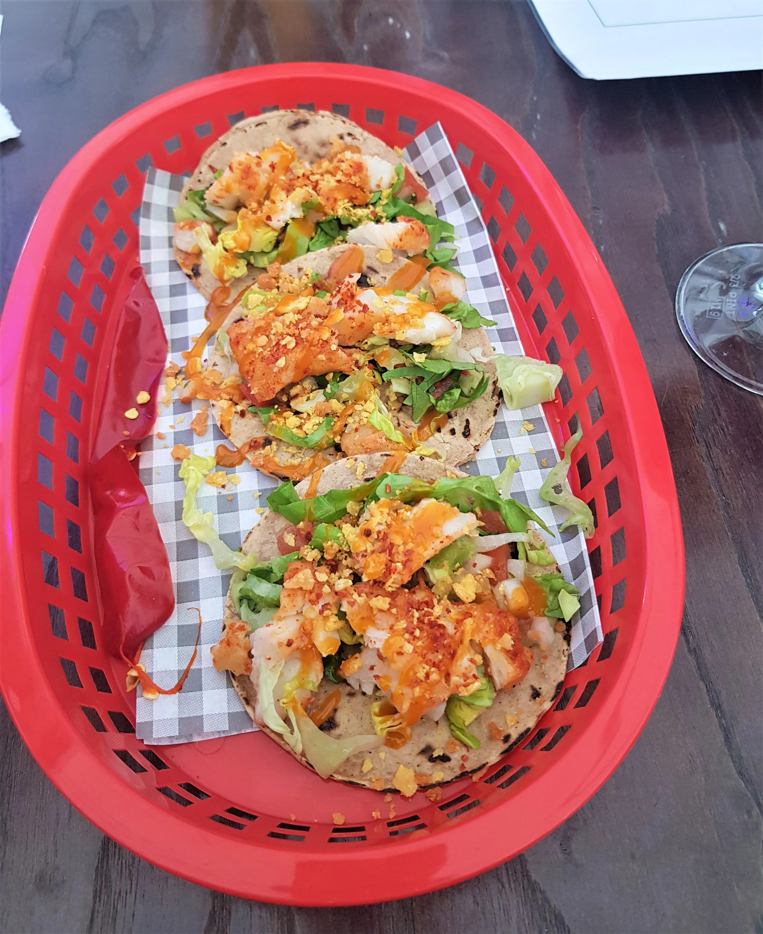 At time of writing, restaurants are open but only for outdoor dining. Wood are currently serving tacos, so we went last week as I’m a huge fan of a fish taco.
