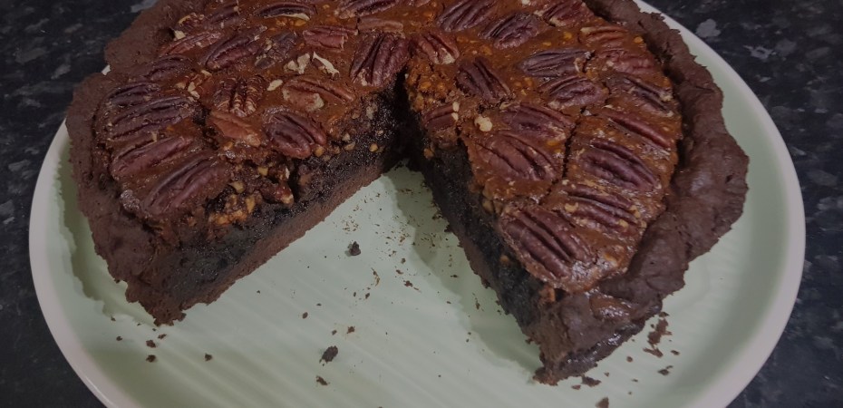 So while I wouldn’t ordinarily order a pecan pie, I couldn’t resist making this version which has a chocolate fudge element. Totally delicious.