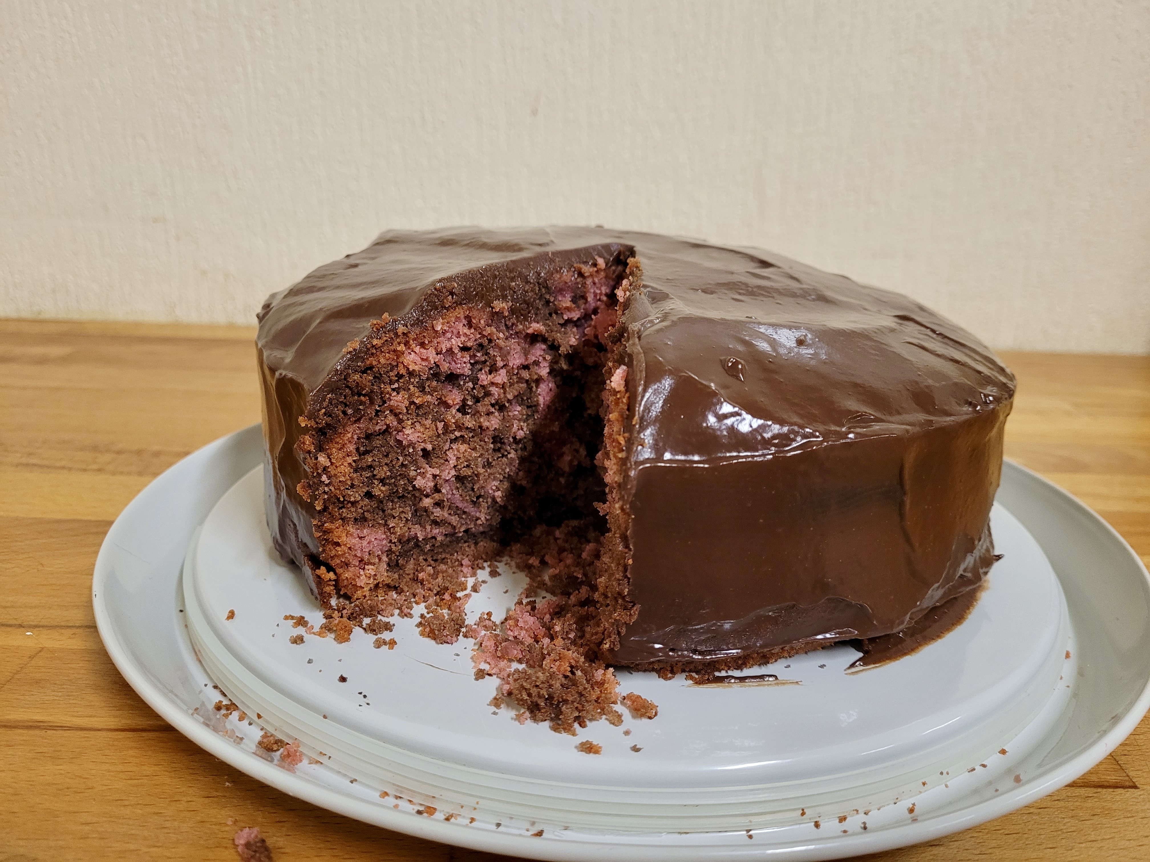 This also has my preferred cake topping of chocolate ganache, as I don’t like icing (and as a type 1 diabetic, neither does my pancreas). If you prefer icing, a store bought chocolate fudge icing would go well here.