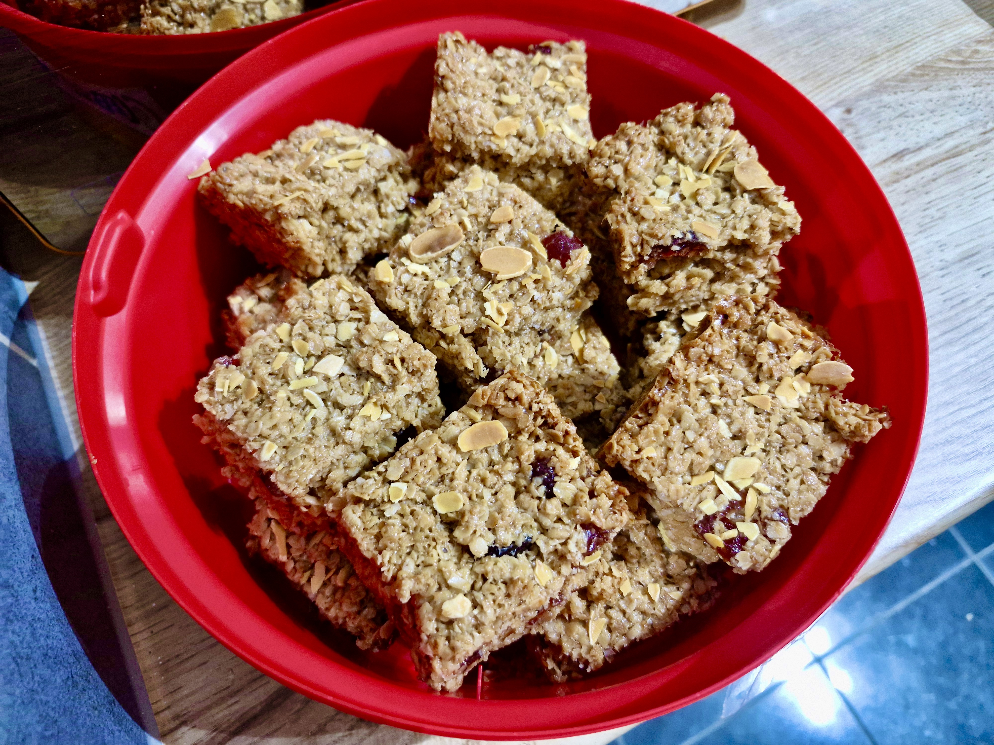 The term ‘flapjack’ has been around in the UK since the 1600’s to describe a pancake, but since the 1930’s has come to refer specifically to these delicious oaty bars. This version is flavoured with cherries and almond essence to mimic the flavours of a cherry bakewell. Sticky, sweet and perfect with a mug of tea.