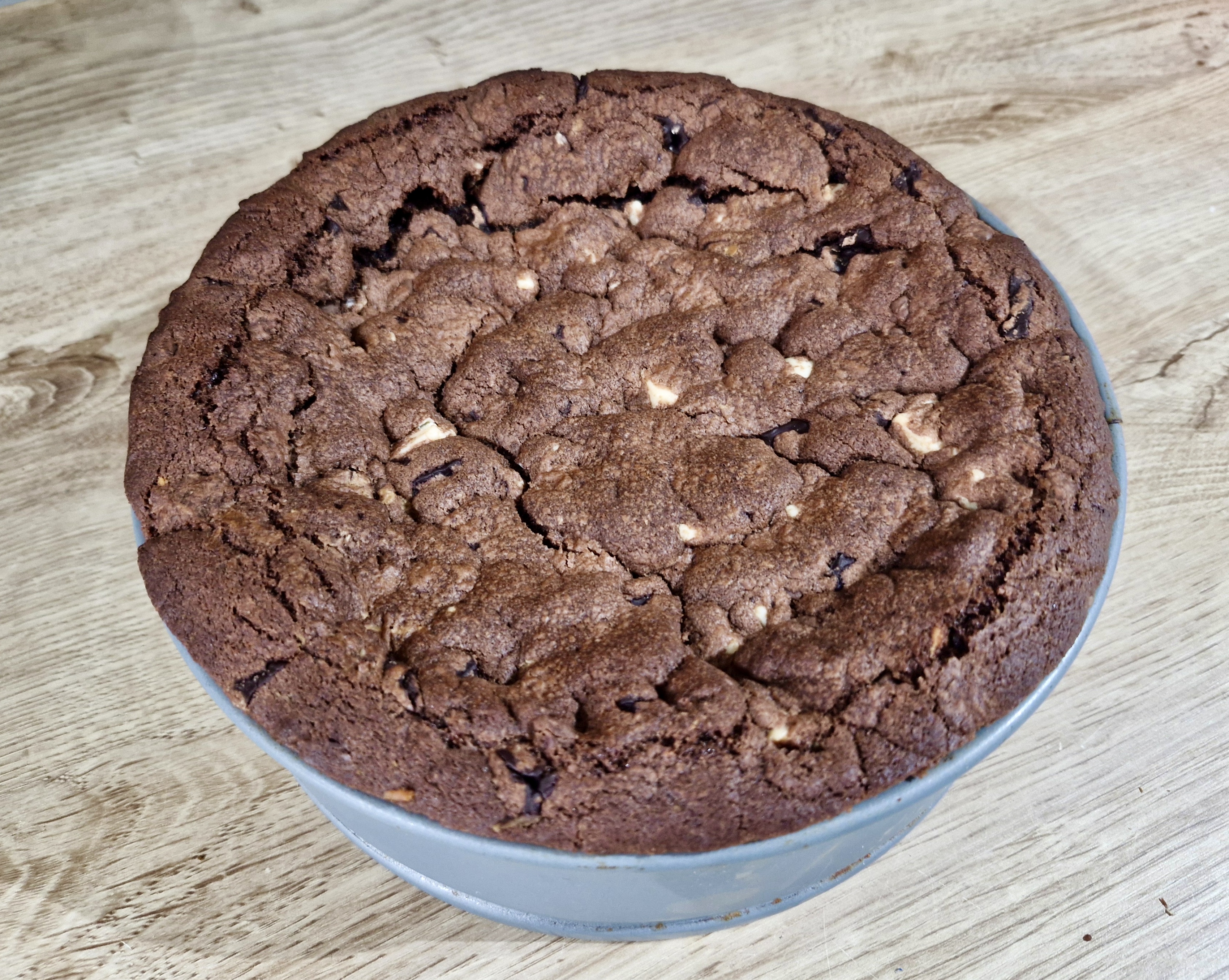 Split the cookie dough into three equal portions (about 475g each).Line the bottom of a 8″ springform cake tin (at least 2.75″ in depth). Press the first third of cookie dough onto the bottom of the cake tin. Press the second third of cookie dough around the sides of the cake tin evenly.