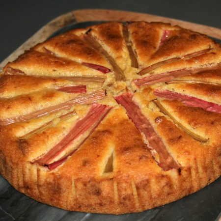 Rhubarb & amaretti cake with orange & rosemary glaze